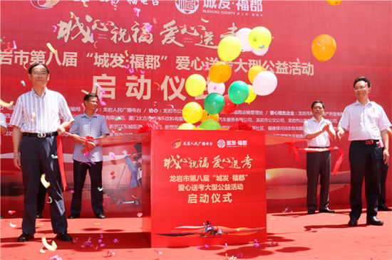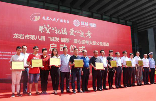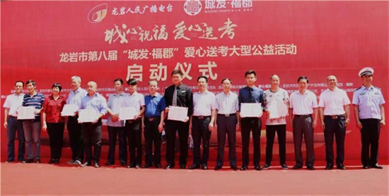 6月6日上午,由龙岩市委文明办、市教育局、市文化广电新闻出版局、市交通运输局主办,龙岩人民广播电台承办,龙马环卫协办的2017年龙岩市第八届爱心送考大型公益活动启动仪式在龙岩金融中心前盛大举行。