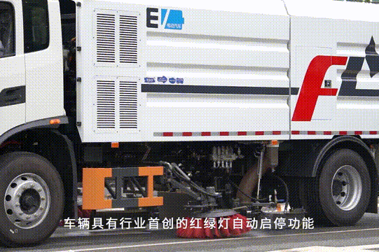 车辆具有行业首创的红绿灯自动启停功能,作业碰到红绿灯需停止行驶时,可自动降低电机转速,停止喷水动作,实现节约水量和降低车辆能耗功能。