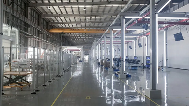 在张西泠等集团领导陪同下,考察团先后绕行厂区、参观城服机器人测试平台,观看移动充电设备、无人驾驶设备及智能洗扫车、路面养护车等产品演示,并深入城服产线了解生产流程。