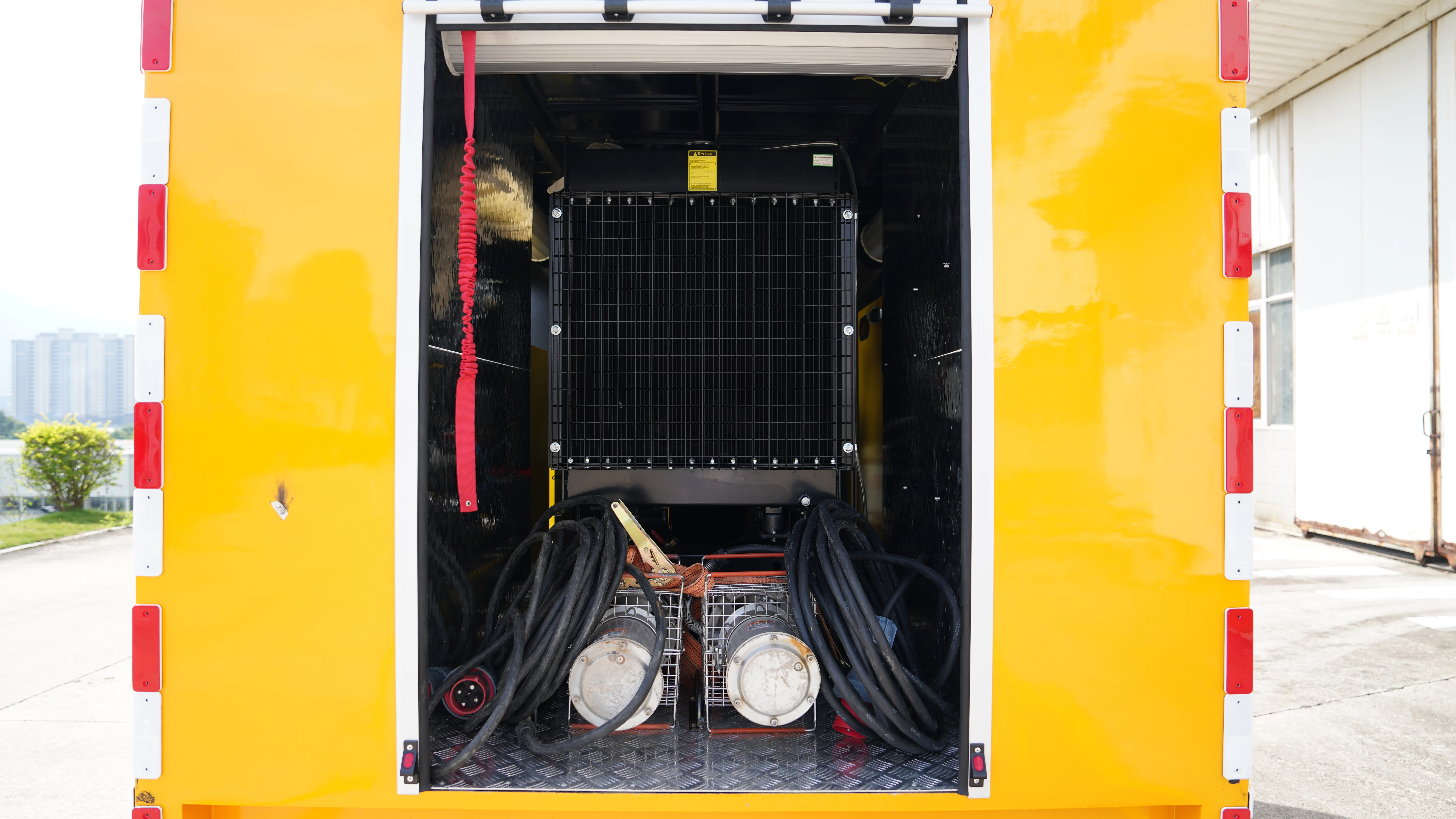 车辆在箱体右侧采取了“主控制系统柜”+箱体左侧“排水系统水泵控制柜”的控制模式,水泵控制柜为一控一,操作前只需打开卷帘门,方便快捷。