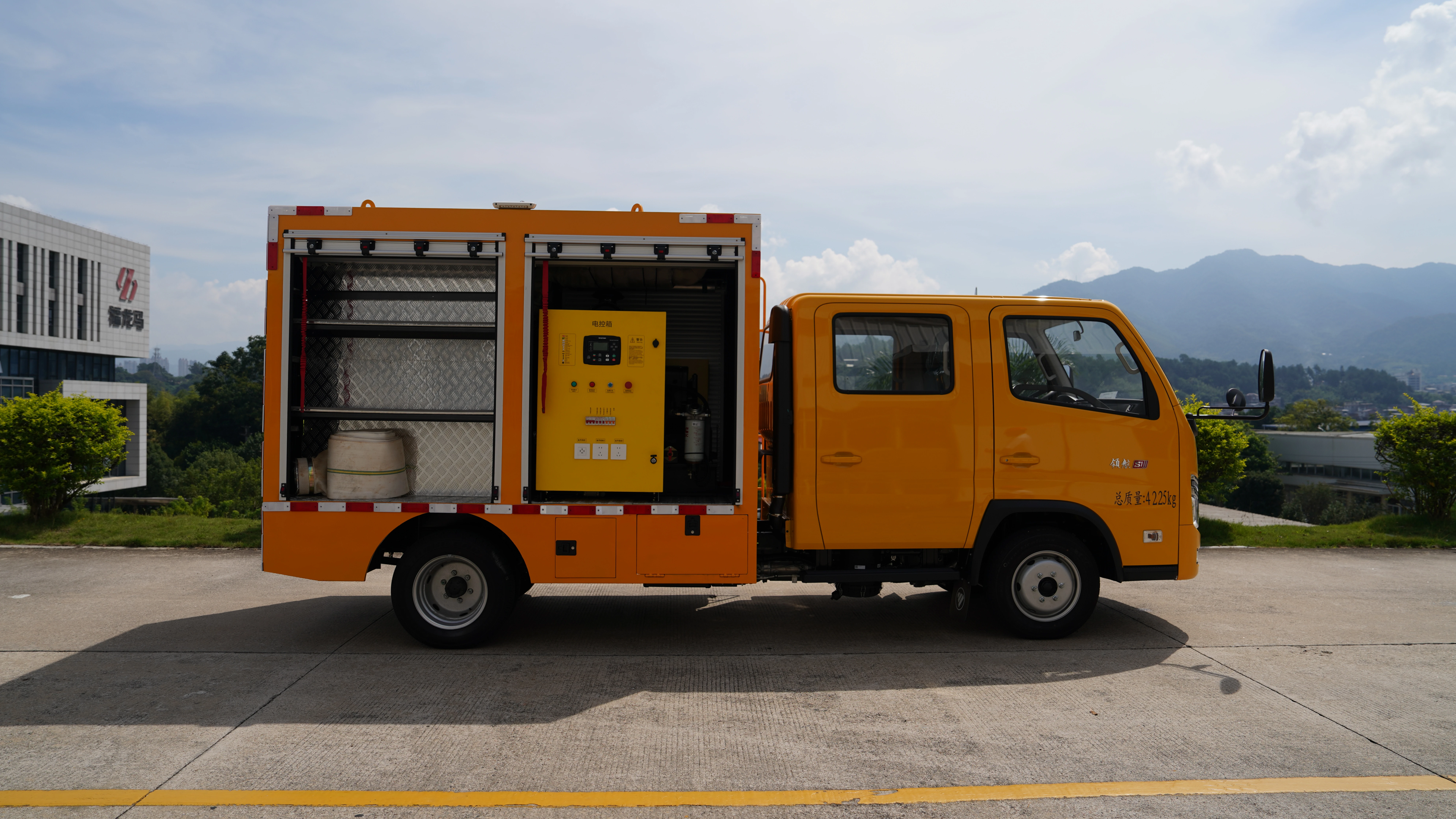 福龙马集团股份有限公司开发的新型大流量排水抢险车,采用发电机组驱轴流泵进行远程排水作业,在机动性、灵活性上可快速奔赴排水现场,大大缩短了响应时间,能在紧急情况下迅速到达指定地点开展排水作业。适用适用于内涝抢险,地下建筑车库、地铁桥梁隧道等积水抢险,应急供水等工况。