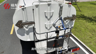 高喷水枪:为铝制远射程水枪,安装于车身后部,操纵灵活,工作角度范围大,适用于喷洗多种高度的物体,能清除一些难以触及的环卫死角。高喷水枪可以左右360°旋转、枪体可上下俯仰操作。通过正反拧转枪体前部的调节套管,可以调节水枪的喷射形状(柱状或雾状)或关闭水枪。工作中可以任意开闭,射程不小于50米,并具备辅助消防功能。