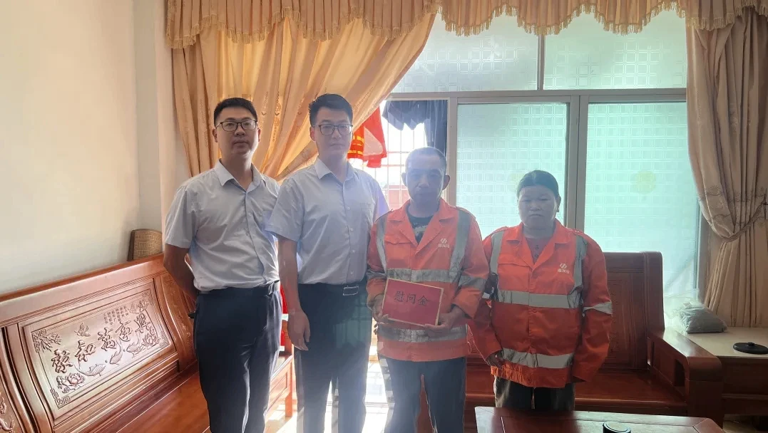 9月5日,福龙马集团环境服务事业部副总经理吴祖临,福龙马始兴项目负责人卢聚忠一行专程前往张相远家中慰问,吴祖临代表集团向张相远夫妇表达了敬意与感谢。在了解到张相远的小儿子成绩优异却面临经济困难后,集团决定进一步资助其学费直至高中毕业。
