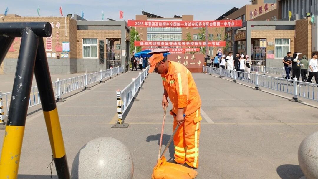 在高考期间,福龙马河南项目公司的领导带队深入和谐路高考点位及周边区域,仔细查看了道路清扫保洁情况,重点检查考点入口、家长等候区等关键区域的卫生状况,并在现场安排保洁力量,要求各部门加强联动,增加巡查频次,确保无卫生死角,为考生和家长提供良好的环境服务。