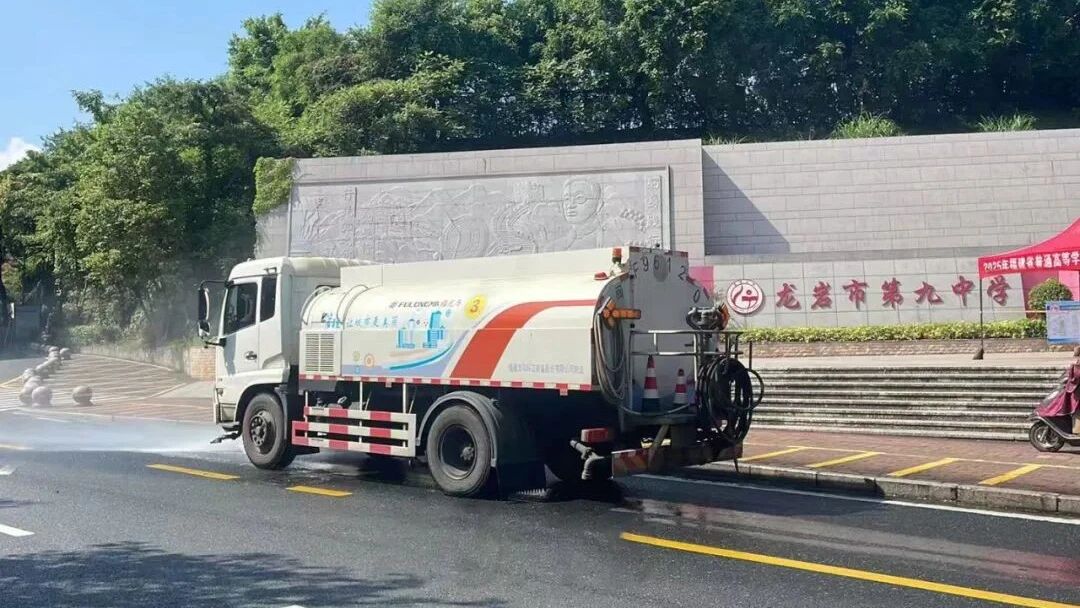 高考期间,噪音控制至关重要。福龙马海口项目公司要求机械化作业部所有作业车辆经过考点时关闭提示音;进行错峰作业:加快加密清运频次,重点区域垃圾容器实施"擦洗+消杀"双100%标准,洒水车调整至每日7:00前完成降温作业,为考生提供安静、舒适的环境。