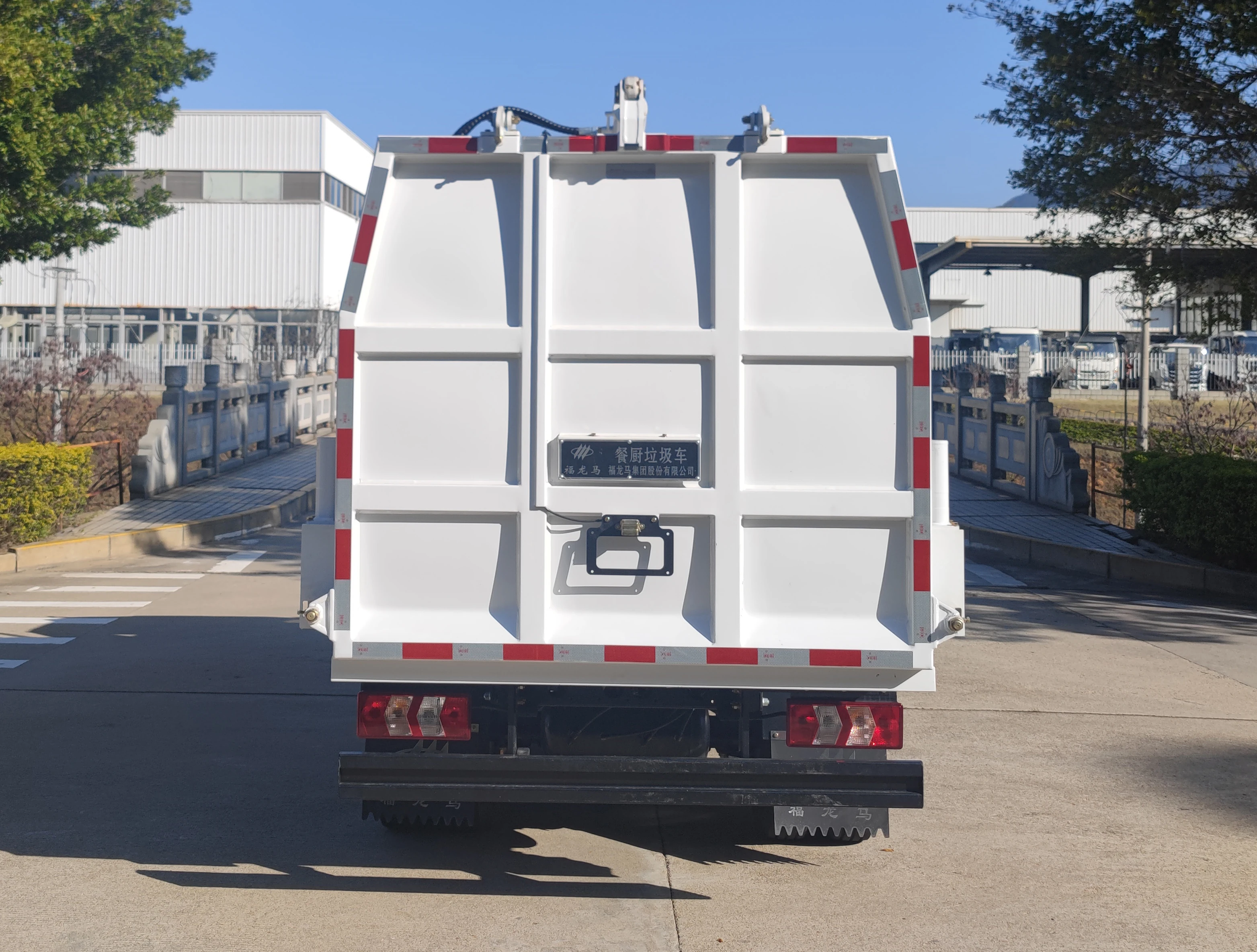 后⻔采⽤⾃主创新可调式锁紧机构,带安全保护的液压系统,双保险机构使垃圾箱体与后⻔胶条可靠密封,保证各种泔⽔等厨余垃圾在收运过程中均处于密闭状态,防⽌厨余垃圾在运输过程中对环境造成的⼆次污染。