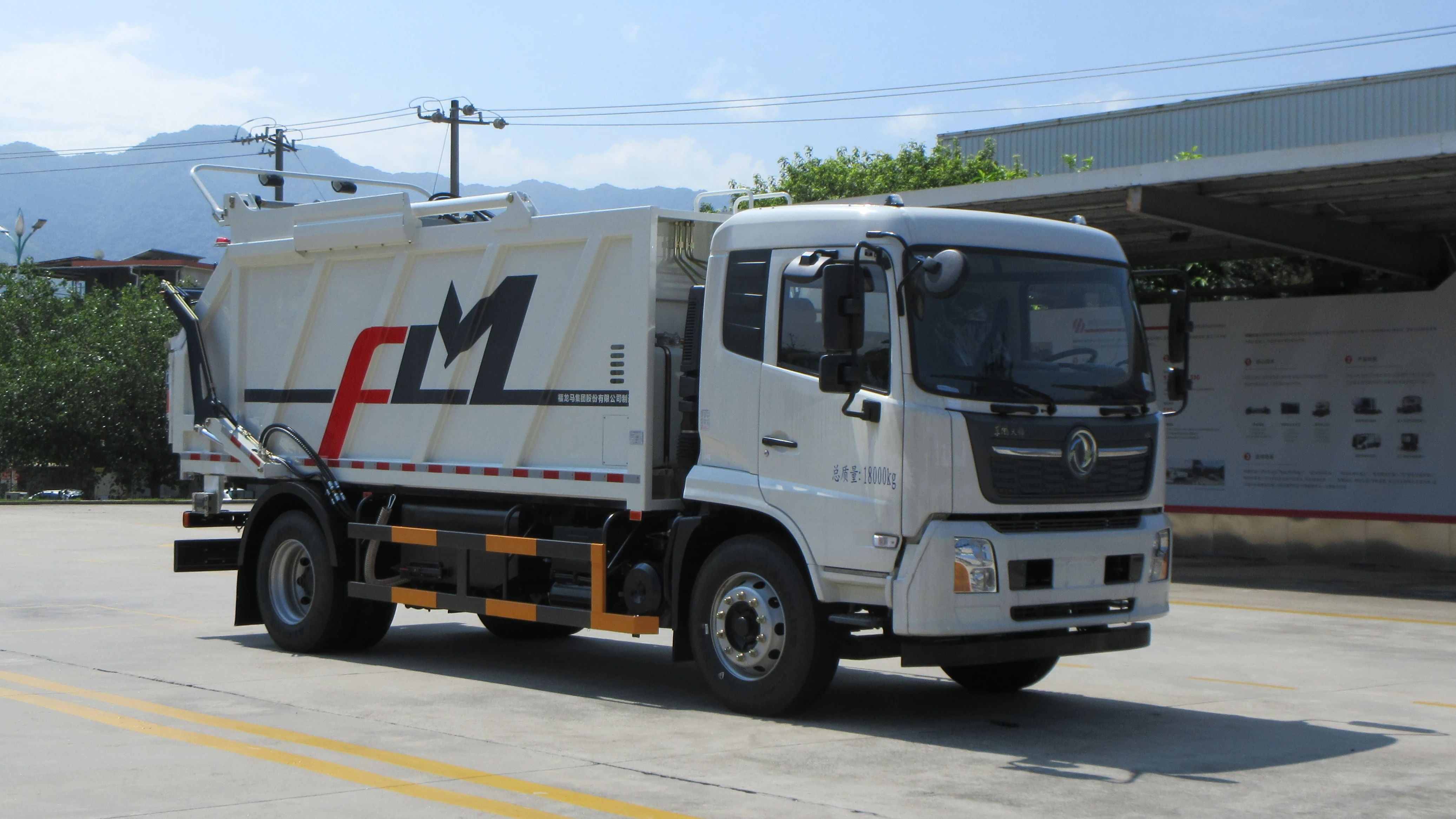 福龙马开发的新型无泄漏压缩式垃圾车,箱体尾部采⽤船型结构,可储存⼤量污⽔。结合可调式后⻔密封技术和锁钩锁紧装置,实现密封胶条压缩量补偿功能,有效解决污⽔滴漏难题。该⻋型适⽤于湿垃圾收集转运,或含⽔量较⾼的⽣活垃圾收集转运。