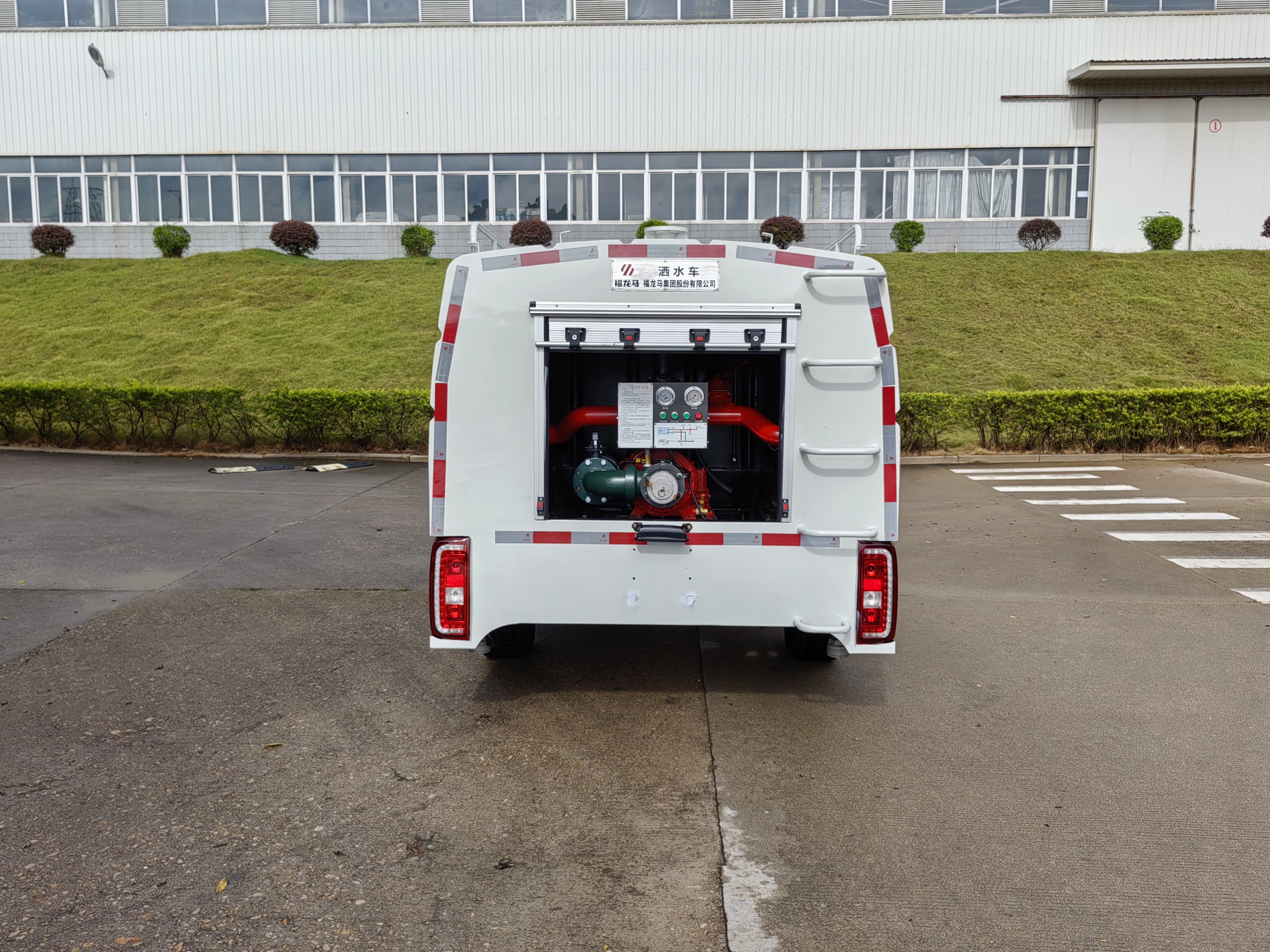 福⻰⻢集团股份有限公司开发的新型洒⽔⻋,具有应急消防救援场景中供⽔及消防作业功能,特别适⽤于地形复杂的森林草原路况,如丘陵、⼭地、凹地、河⾕及平原的森林隔离带正常通⾏,能快速、灵活的到达现场进⾏灭⽕救援,提⾼森草环境消防灭⽕需求及速度。