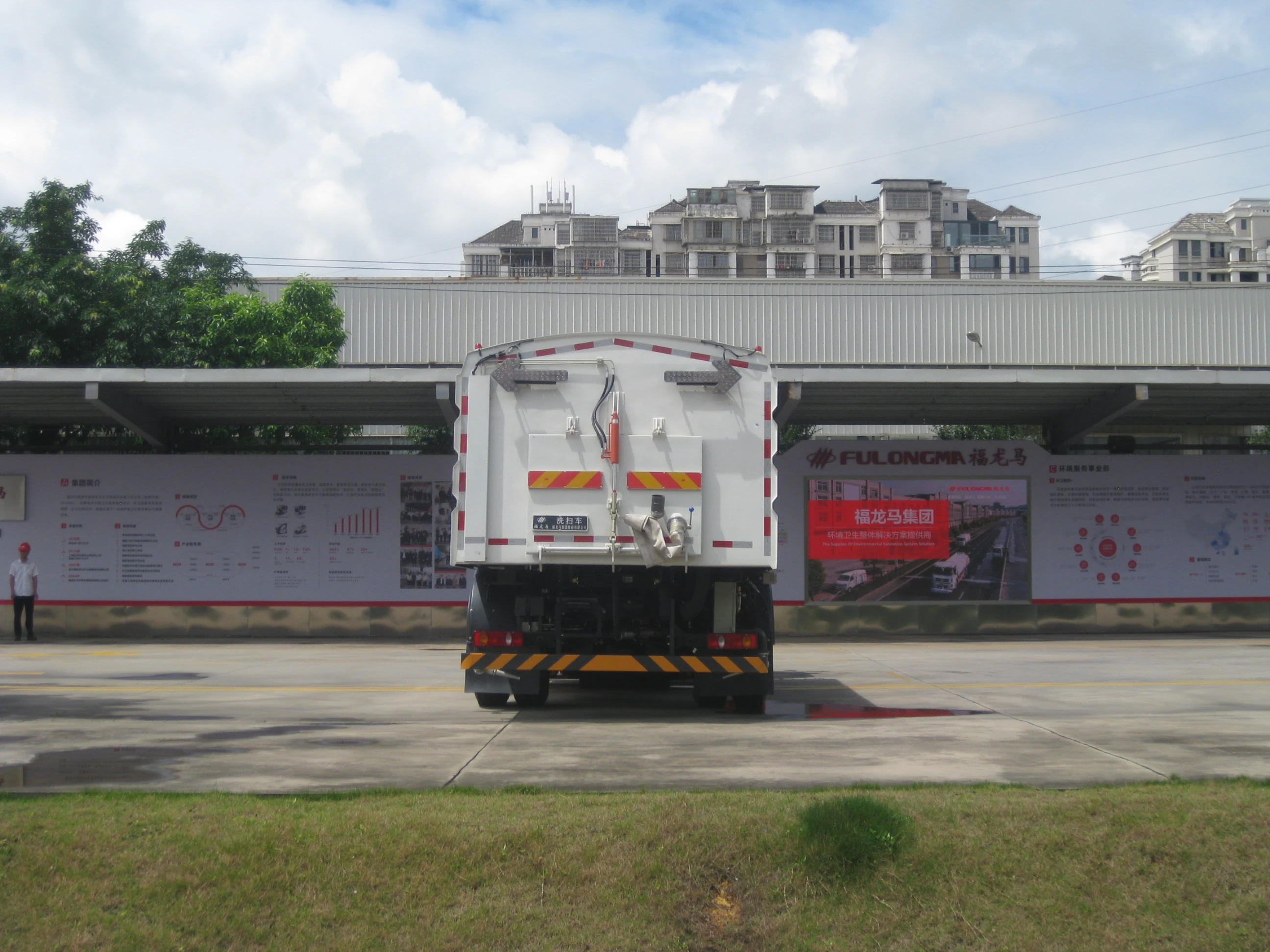 具有多种安全报警装置:清⽔箱低⽔位,污⽔垃圾箱⾼⽔位,作业提⽰,副发动机⽔温、机油压⼒,倒⻋提⽰,液压油泄漏,垃圾箱倾翻、复位,后⻔开闭安全报警装置等。