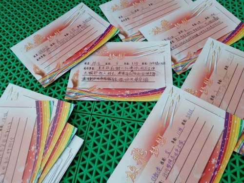 回收孩子的心愿卡和梦想卡并张贴在墙上