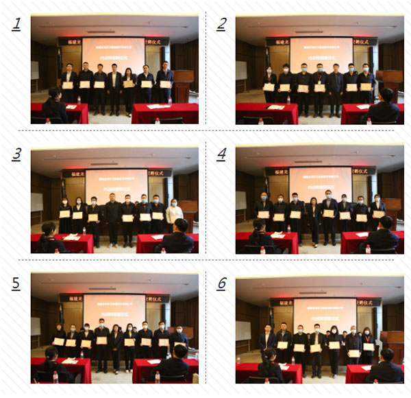 为加强公司内部知识、经验、技能的相互交流与学习,搭建完善的内部培训管理体系,打造学习型企业。2021年2月1日下午14:00,在龙岩总部举行了公司首届内训师授聘仪式。集团总裁张桂潮、监事会主席沈家庆、董事会秘书章林磊、人力资源总监张西泠、环卫运营事业部副总经理周玮出席仪式。