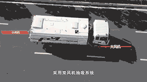 采用国家专利双风机抽吸系统,即中置双吸口吸嘴+后置单吸口窄吸嘴结构对路面垃圾进行双重吸拾,确保吸拾洁净率。