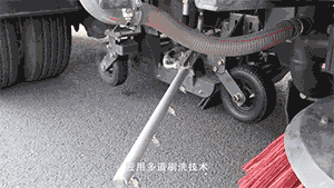应用多道刷洗技术,即清扫刷归拢可见固体垃圾+V型高压喷水打击路面尘土,整车洗扫净率高。