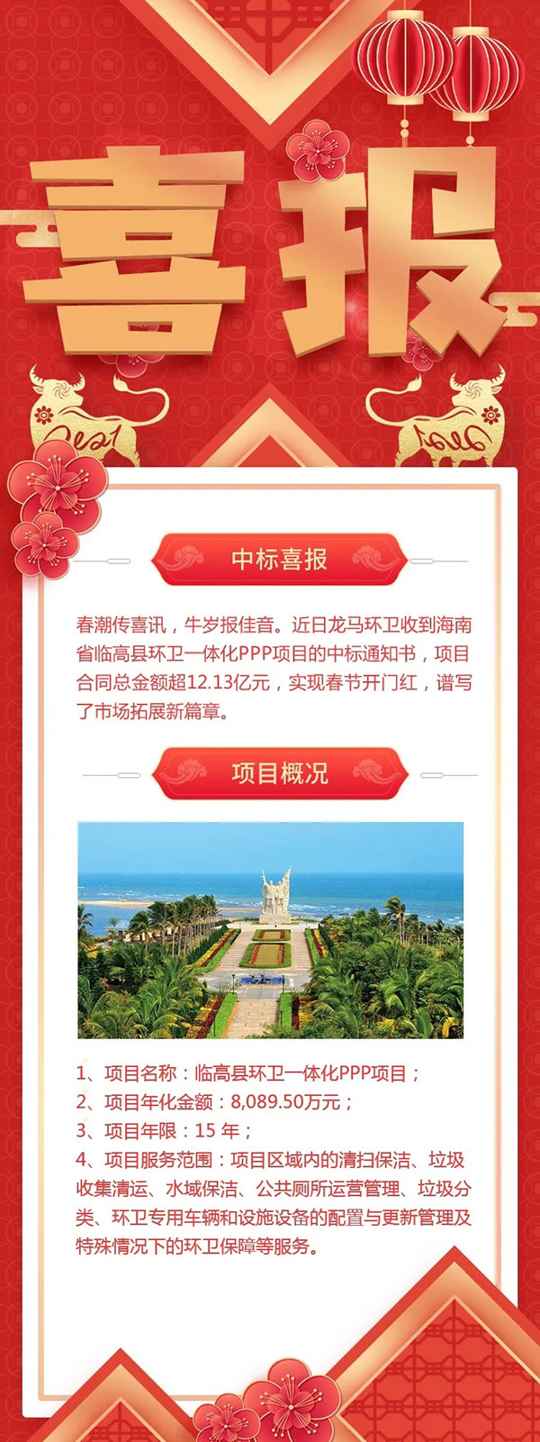 龙马环卫中标海南省临高县环卫一体化PPP项目 2021-02-24 1590 分享 上一条 龙马环卫装备事业部2021年春节营销动员大会圆满召开2021-02-22 下一条 硬核实力 | 超高效静音纯电动洗扫车洁净效率双在线2025-07-11