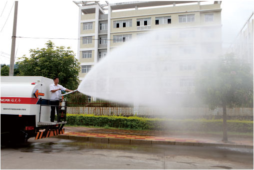 福龙马研发的高效高压清洗作业专用车辆,主要利用高压水流冲击地面尘土,并使之汇集流入排水管道中,从而达到清洁降湿的功效。该车具有多功能作业模式,高压清洗、强力去污、高效节水,被指定为洒水车升级换代产品,可广泛应用于环卫、市政、园林绿化作业。