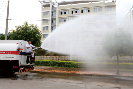 福龙马研发的高效冲洗作业专用车辆,主要利用低平水流来冲击路面尘土,并使之汇集流入排水管道中,从而达到清洁降温的功效。该车具有多功能作业模式,可广泛应用于环卫、市政、园林绿化作业。