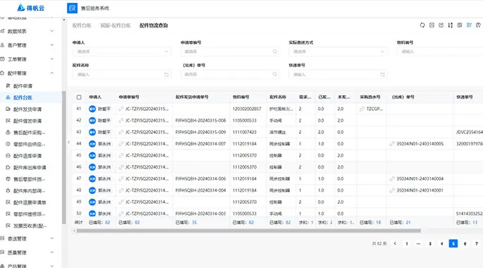 实现配件的线上申报到寄件,实时跟进下单情况,关联物流信息查询,提升配件供应时效。